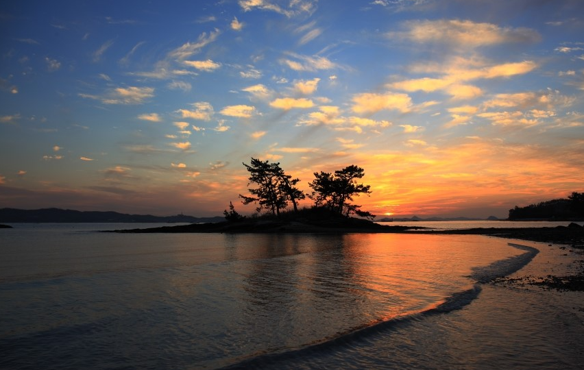 고요한 바다와 너른 하늘, 그리고 노을이 정말 장관이에요.