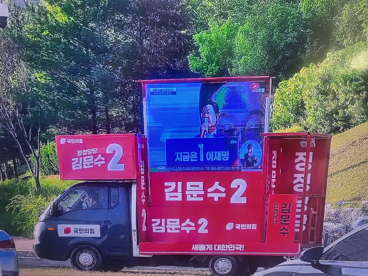 🛻 유세차는 ‘국힘’, 영상은 ‘민주당’?